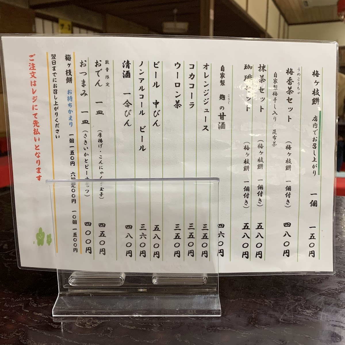 “ 600¥ for green tea and mochi with beans . The place is very nice, the tea is tasty though I don't like mochi. Also even when it wasn't busy at all we had to wait quite some time for our tea. But looking at the plum blossom made the waiting time pleasant. ”